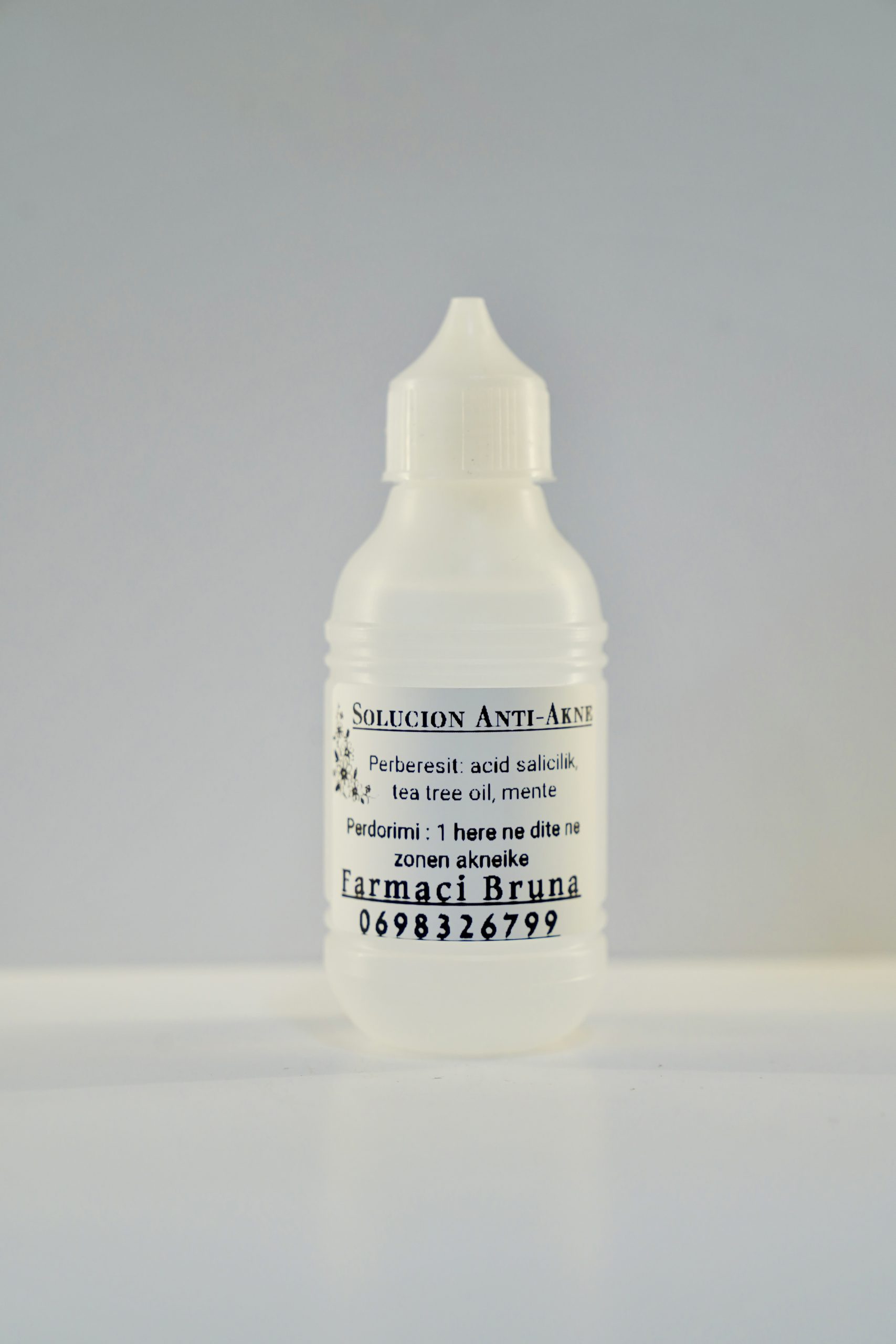Solucioni anti-akne eshte nje solucion i formuluar me ingrediente si acidi salicilik, i cili heq papastertite nen lekure, perthan aknet, ka veprim antimikrobik. Permban tea tree oil i cili ka veprim antibakterial. Pastron zonat e yndyrshme me pika te zeza, akne.